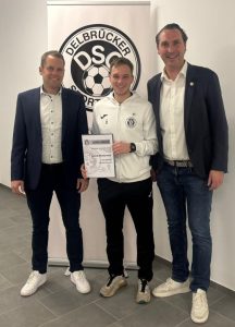 Im Anschluss ernannte die Versammlung Bruno Wook zum neuen Ehrenmitglied des DSC. Wook war lange Jahre als Seniorenspieler aktiv und schnürte selbst im hohen Alter noch seine Fußballschuhe. Dazu war er Teil des Bauteams, das sich über viele Jahre um das Stadion am Laumeskamp gekümmert hat. Seine Enkelin Katharina spielt ebenso bei uns und gehört dem Vorstand an. Darüber hinaus wurde Jannik Diederichs (M., Foto links mit Elmar Westermeyer (r.) und dem zweiten Vorsitzenden Alexander Rübbelke) mit der silbernen Verdienstnadel ausgezeichnet.